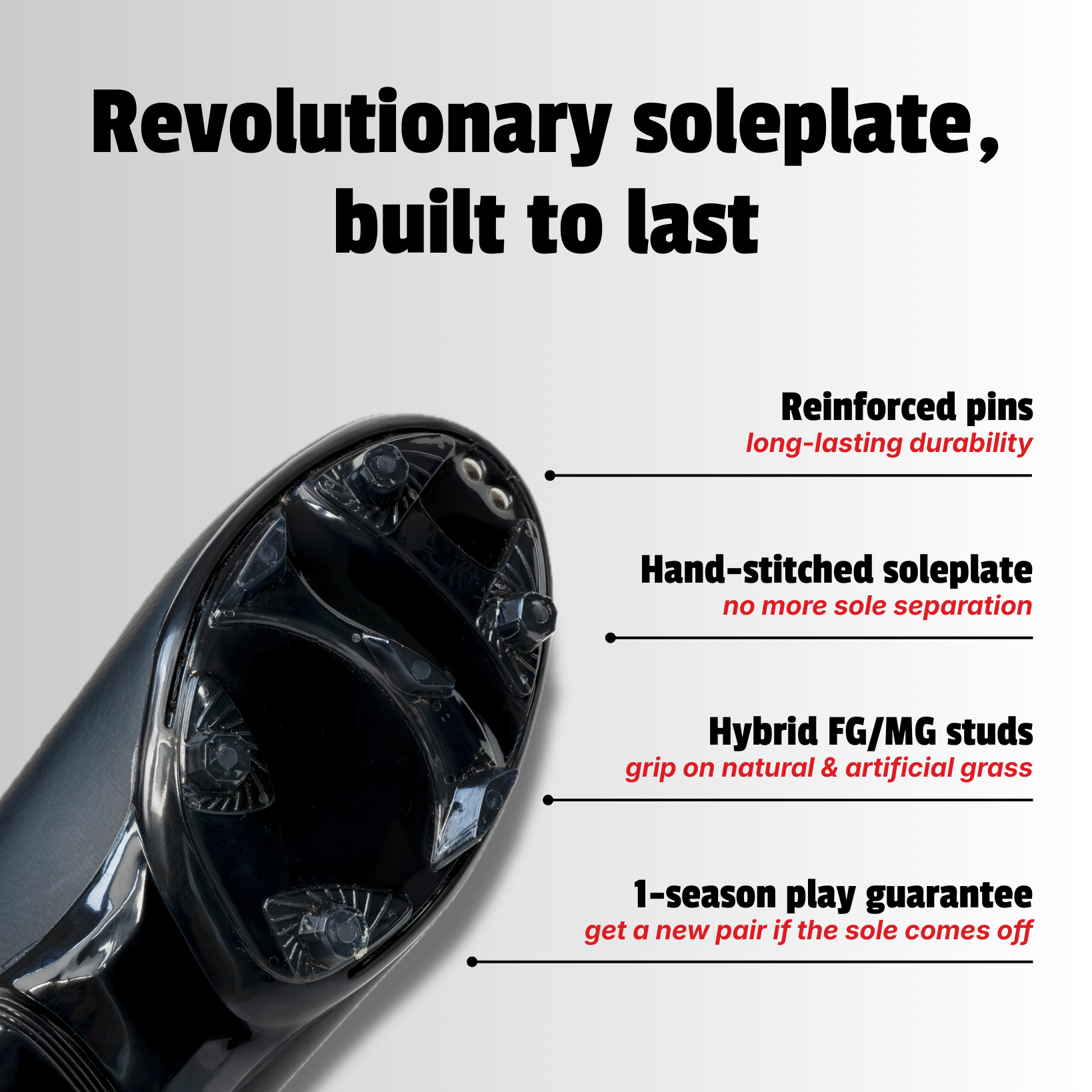 Handgestikte zool zodat je seizoen na seizoen zorgeloos kunt blijven spelen.