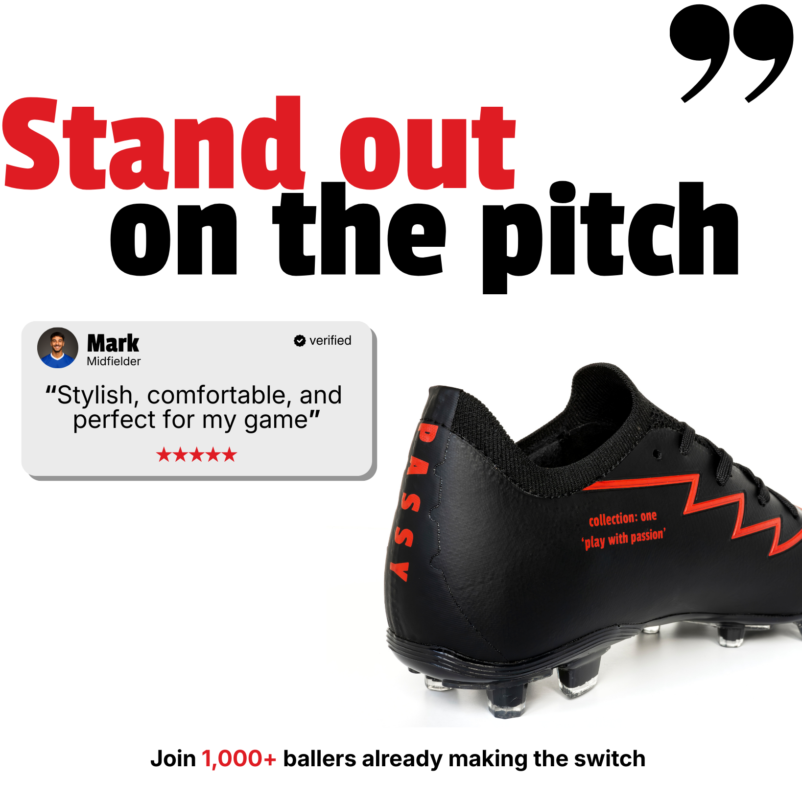 De voetbalschoenen van Passy zitten vanaf de eerste minuut perfect, voelen licht aan en zijn super comfortabel... echt een game-changer!